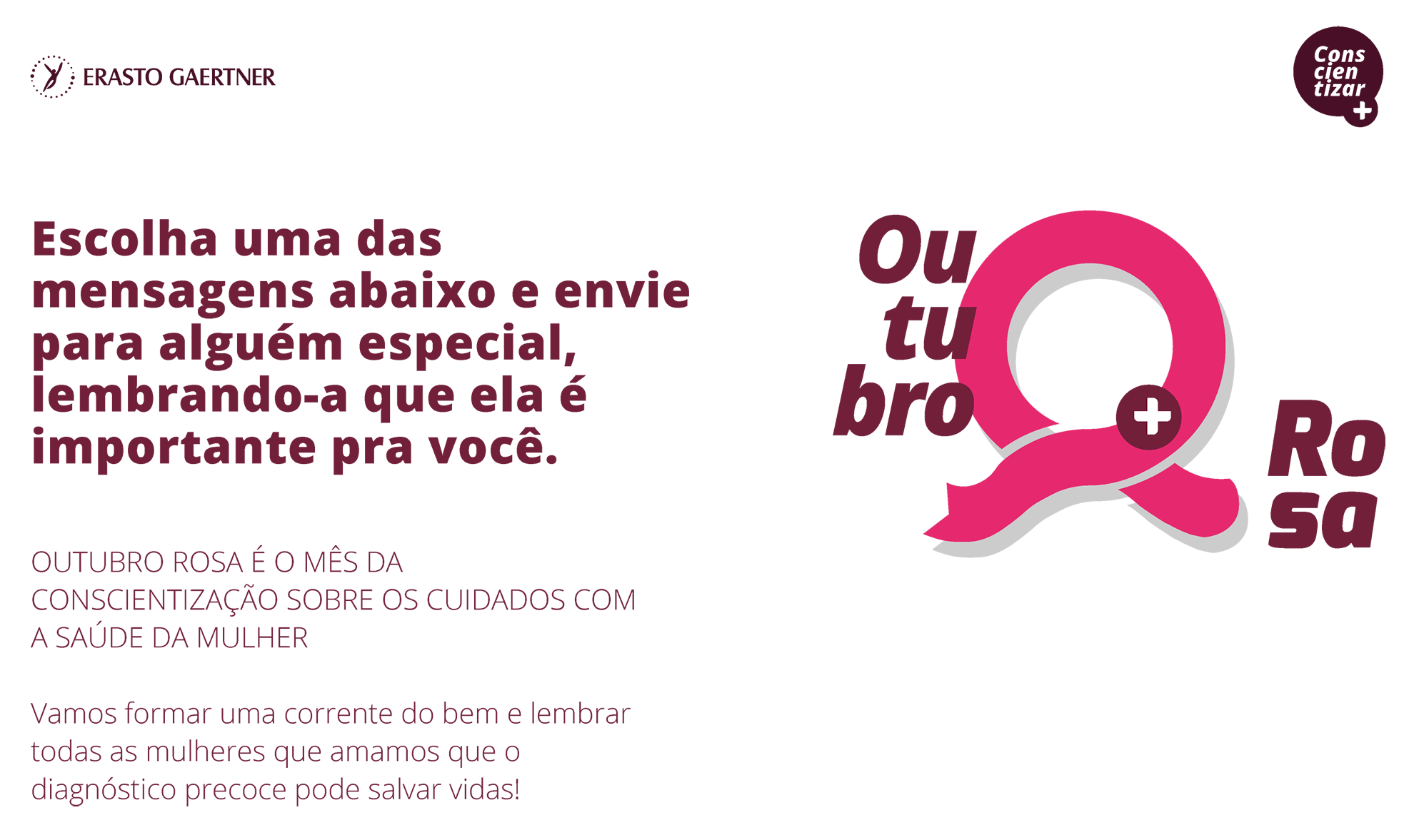 Vamos formar uma corrente do bem e lembrar todas as mulheres que amamos que o diagnóstico precoce pode salvar vidas!